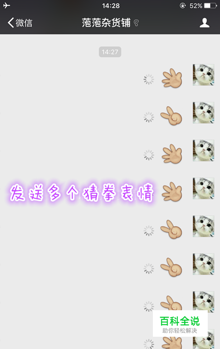 好友的猜拳表情是石头,咱们就选择包袱表情重新发送,必赢
