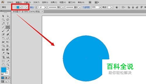 默认填充颜色为白色,为了看起来明显,我们任意设置填充颜色为蓝色,无描边,然后在画布上按住shift键,绘制一个正圆