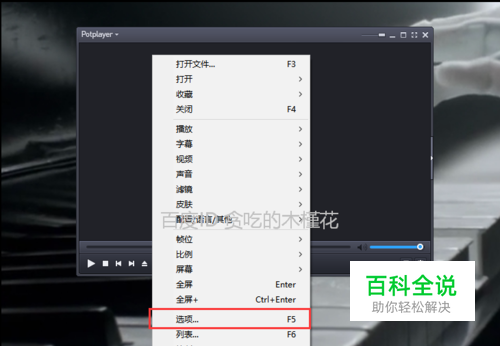 无论你使用的是安装版还是绿色版,第一次打开potplayer播放器你都可以在播放器视频区域右键调出设置菜单或者也可以直接使用快捷键“F5”来打开设置。
