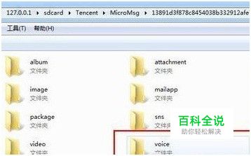 在一堆数字和字母上找到:/sdcard/Tencent/MicroMsg/,打开对应的备份文件夹,进入后,找到“voice”文件夹,文件夹里的arm格式文档就是聊天语音记录。