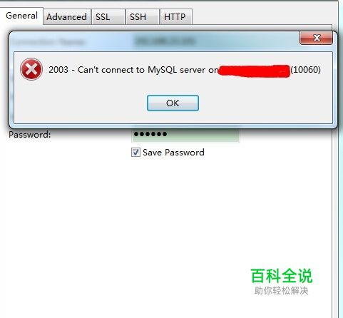 Mysql通过远程的连接工具连接,提示Can't connect to MySQL server (10060)。 这个时候我们需要分析,看哪里设置不当而导致的该问题。