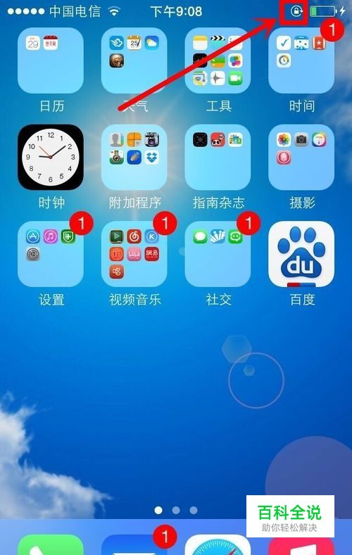 有时候,手机电池旁边会出现一个小锁。这个锁是重力感应锁,有关于设置手机旋转效果的。如果想把这个小锁符号去掉,按照一下方法操作即可。