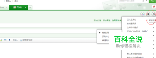 点开“写信”,右上角有个齿轮形状图标即“写信设置”,你可以看其下拉菜单中有没有你需要的功能,如果没有点击最下面“更多设置”→“基本设置”→“发送邮件后”→“可以撤回邮件”(后面有个使用说明,如图所示)→“保存”。