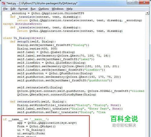 最后我们需要对生成的python文件加入头文件和主函数,就可以生成一个完整的GUI程序了!首先是在整个程序的最开头加入import sys,如图所示。