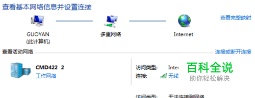 再点击该界面中的无线连接,也就是已经连接上的无线网络的名称,如果是有线连接的话,就直接点击有线连接选项,点击后,弹出网络连接的状态信息,如图