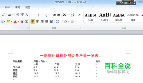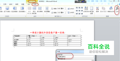 表格合计计算在EXCEL中运用的比较多,不过在WORD中也时常会用到,我们以此为例,要求:在“合计(万台)”列的相应单元格中,计算并填入一季度该产品的合计数量。