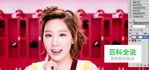 眼睛放大后,难免一些边缘可能遮盖住了鼻子或眉毛处,我们可以在之前复制出来的眼镜图层添加个蒙版。如图,在图层面板上,选住之前新加出来的层,点蒙版按钮。