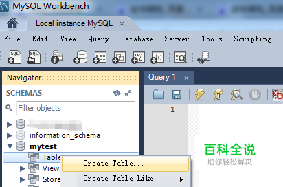 打开MySQL Workbench,创建好一个数据库,右击Tables,选择Create Table
