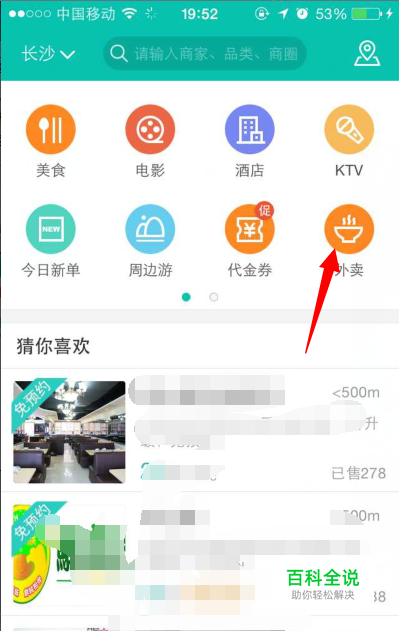 点击红色箭头指向的外卖,如果没有这个外卖就可能是那个地方没有美团外卖。