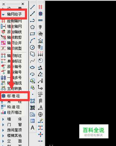 第一步: 在天正菜单中展开“轴网柱子”,在二级菜单中点击“标准柱”。