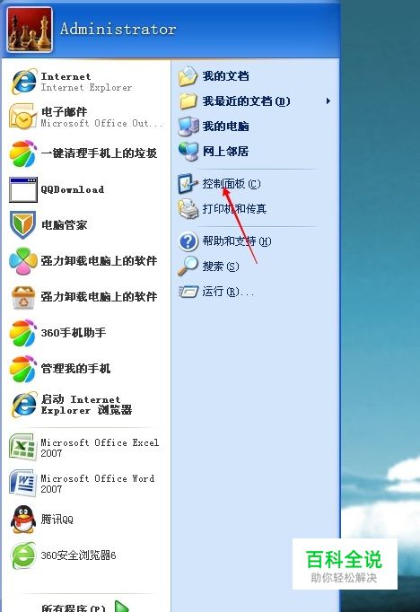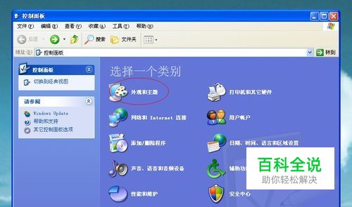 点击电脑左下角的开始,点开控制面板按钮,就会弹出一个对话框,选择外观和主题。