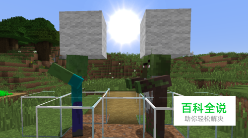 辨认僵尸村民 僵尸村民和一般的僵尸长得不太一样,所以还是很好辨认的。辨认方法就是,僵尸通常是穿着淡蓝色的衣服和蓝色裤子,而僵尸村民则有着大鼻子和红色眼睛,身上穿着破破烂烂的有颜色的衣服(对应其感染前的职业)。如下图就是僵尸(左)与僵尸村民(右)。