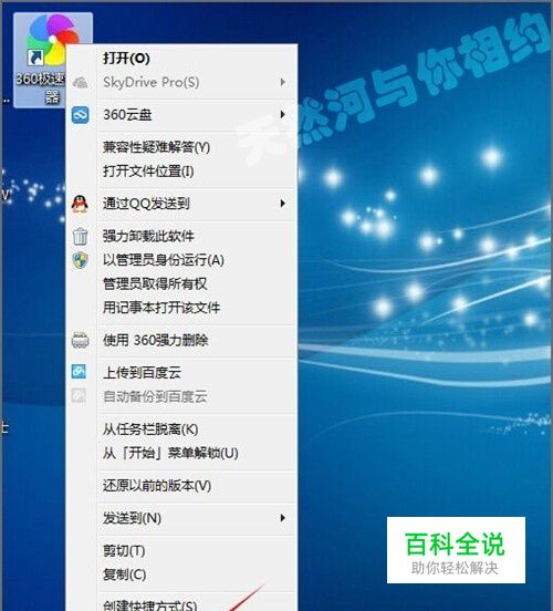 当然除了在桌面上可以找到浏览器的快速启动图标,如果是桌面上的360浏览器的图标不见的时候我们还可以通过在开始菜单中找到它的图标。我们在它上面点击右键,在下拉列表中选择属性。