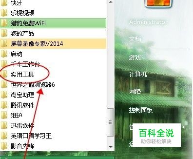 然后,单击桌面的【开始】,》》所有程序》》找到【实用工具】
