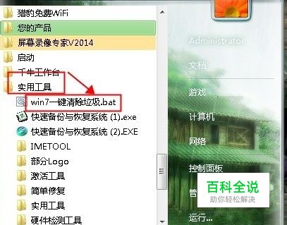 点击进入【实用工具】找到'win7一键清除垃圾.bat'