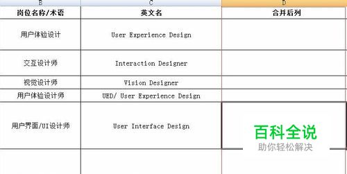 第六步,下拉完成后,这一列内容即全部合并完成。