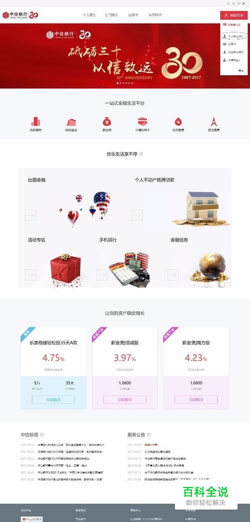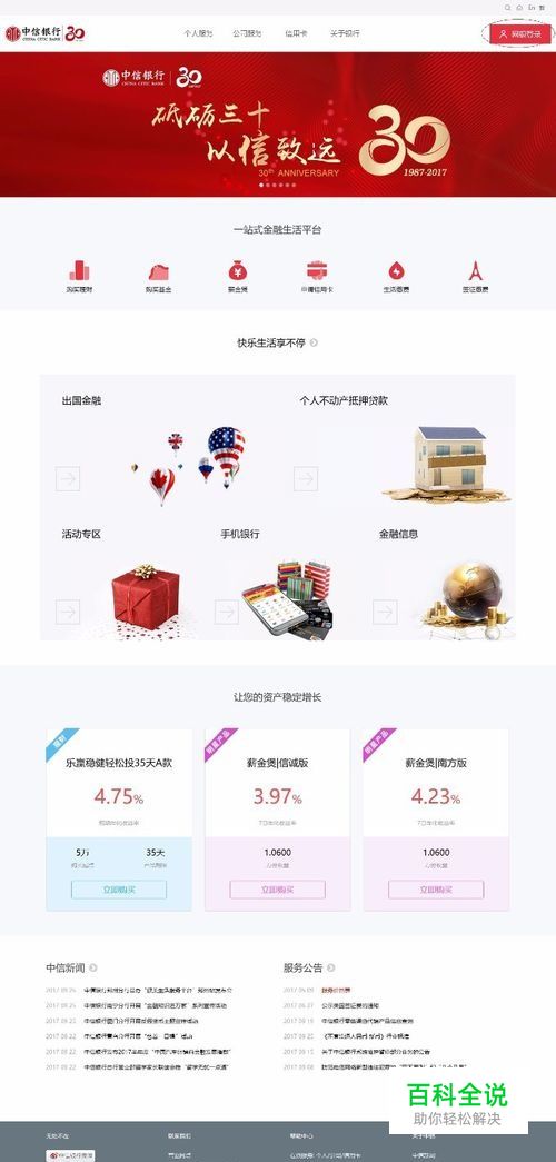 第一步 访问中信银行官网,网银登录。