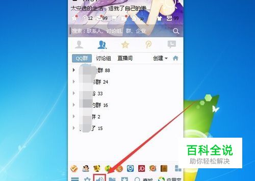 登陆上QQ之后,我们点击QQ软件界面底下的喇叭图标,以此打开消息管理器 如图