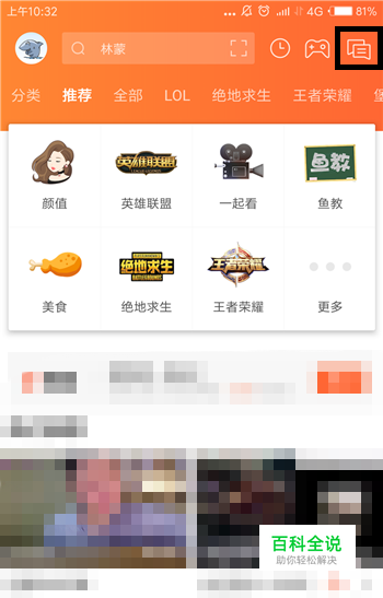 另一种方法就是在斗鱼直播的首页中点击右上角的【消息】按钮,如图所示。