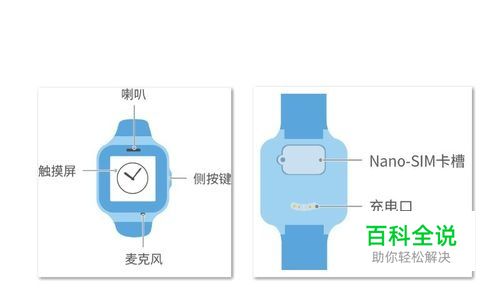 手表正面是触摸屏、喇叭、麦克风,侧面有侧键,背面是Nano-SIM卡槽和充电接口