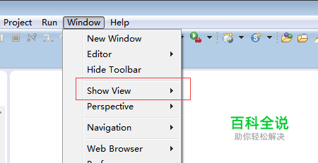 在Window下拉框中选择Show View选中,然后在Show View右侧选中Console。