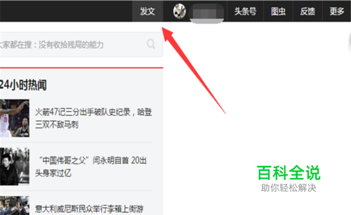 首先我们要申请一个头条号,大家可以去头条号的网站申请,有了头条号我们就进入到个人中心,或者进入到头条新闻的主界面,点击右上角的发文;
