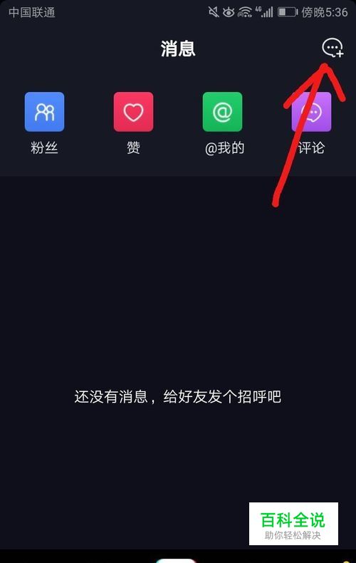 先来和大家说一说如何对关注的人发消息的放方法,首先,进入到消息里面,选择右上角的图标,可以进入到自己关注的人汇总界面