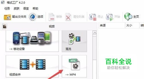 首先在电脑运行格式工厂,然后点击视频标签,接着在打开的页面中点击MP4图标。