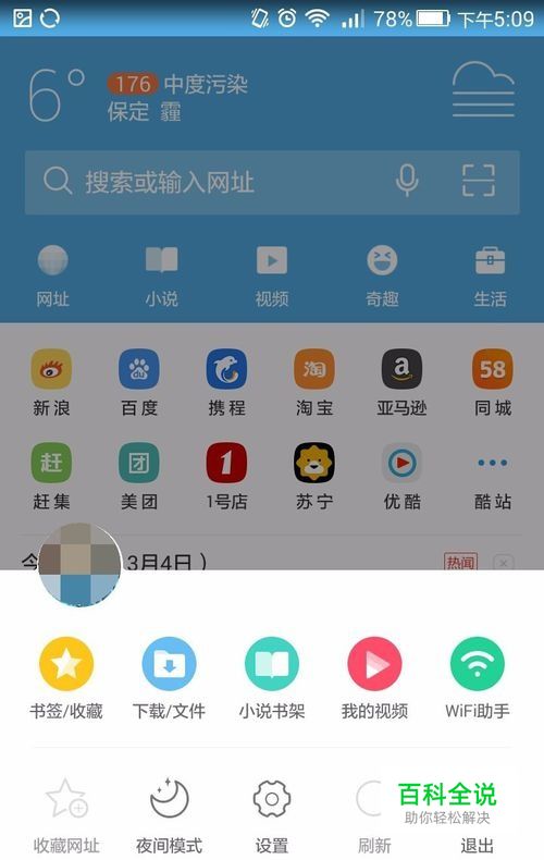点击菜单,也就是UC浏览器下面三个按钮中,中间的那个,会出现下面的界面
