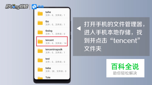 打开手机的文件管理器,进入手机本地存储,找到并点击“tencent”文件夹。
