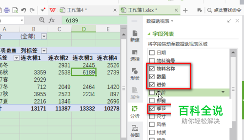 在“字段列表”下选择需要汇总的字段,也就是最后拆分出的小表格中需要包含的字段和汇总数据。