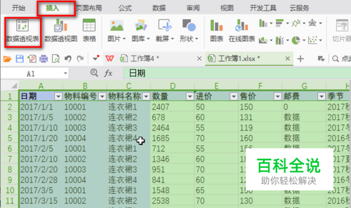 首先选中原始表格数据,点击“插入”菜单下的“数据透视表”选项。