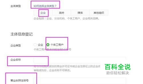 主体选择类型之后,可以看到需要类型、名称、营业等。这个如果是个人的话,可以随便写一下,到时候会验证失败,不影响小程序的测试,直接进行下面管理员信息登记。