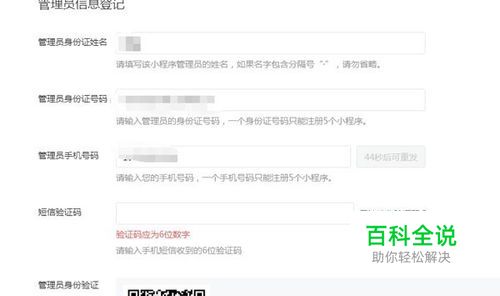 在管理员身份认证的时候,需要填写身份证、姓名、手机号、以及手机号验证和微信管理员的身份验证等。如下图操作显示