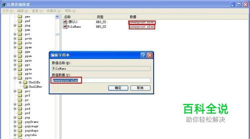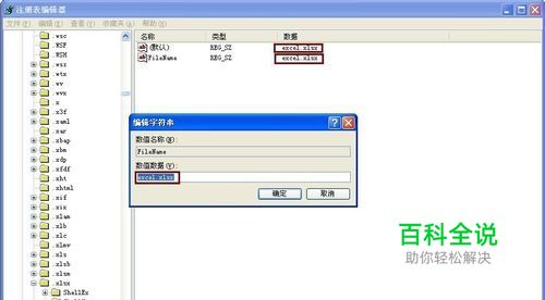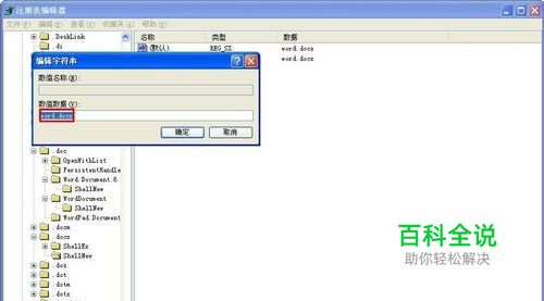 双击FileName单开属性,在数值数据中填入“word.docx”,同时双击默认打开其属性,在数值数据中填入“word.docx”。这时候就添加好了。