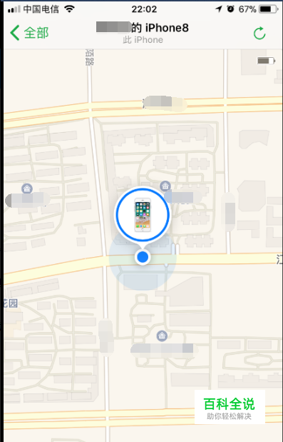 6、再次进入【查找iphone】,就可以定位到手机的位置了。