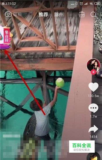 首先打开抖音,在抖音的左上角找到集音符并点击。