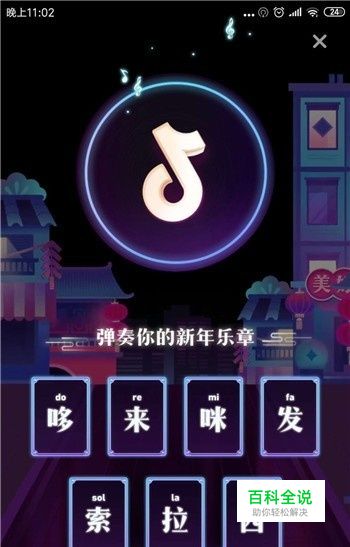 按住大概在两秒的时候就会打开弹奏新年乐章的界面,下面是一排音符,我们要做的就是弹奏乐曲。