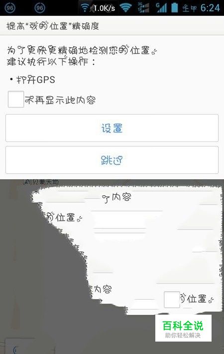 然后将会自动的获取自己的位置了,如图,请求设置打开“GPS”,定位更精确。 如果不需要这么精准,忽略即可。