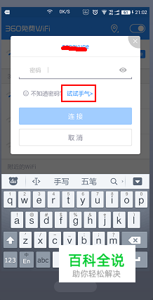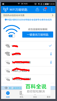 如果打开数据连接,查到的热点没有查出小钥匙图标,那就不好办了,因为现在很多热点不再是简单的0123456789,0000000000等等之类的易猜密码了,如果他选用手机号码做密码,那就可能是用穷举法几天也破解不出来。 当然你也可以试试另一款“360免费wifi”,他其中有项功能就“试试手气”,用他的常用密码库测试一下看能碰巧破解不。