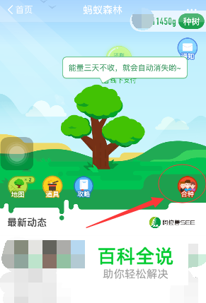 在蚂蚁森林主界面点击大树右边的合种按钮。