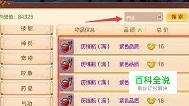 可在售卖里买其他玩家寄售的历练瓶(历练可以通过空的历练瓶提取,然后通过售卖寄售给其他玩家)。