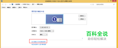 弹出“分辨率设置”的窗口之中点击“放大和缩小文本“