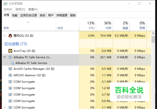打开任务管理器,展开Alibaba PC Safe Service;
