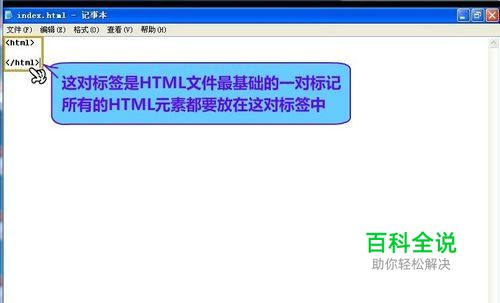然后在index.html-记事本里输入开始和结束代码html