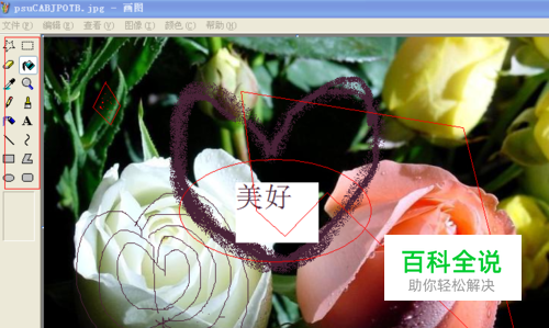 涂鸦的时候我们一般常用的就是加一些文字。如下图所示,我们在界面左边找到一个字母A,这个标识在画图工具中都表示的是文字,现在我们就可以在图片中加上自己需要文字。