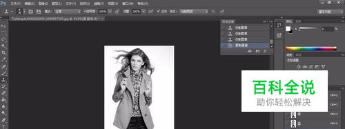 我们发现白色的区域还是有黑色,我们要把人物里面的黑色去掉,选择“画笔”工具,然后选择白色,把它涂抹成白色,如图所示
