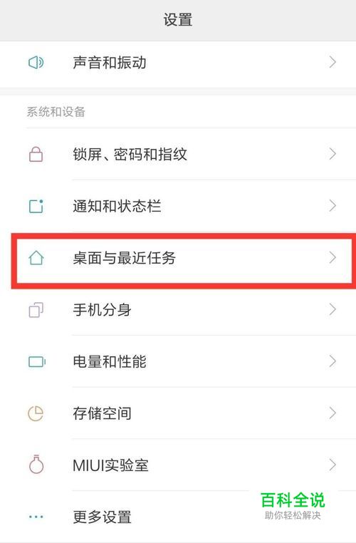在设置里找到桌面与最近任务。
