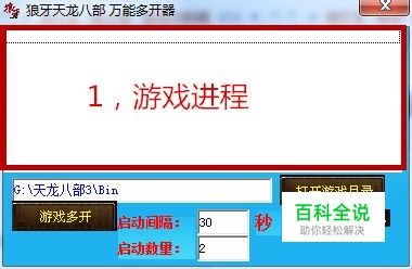 天龙八部多开器免费版 更多免费资料可关注我哦 天龙八部多开器 天龙八部批量多开 游戏进程显示 游戏进程显示 天龙八部游戏目录,找到BIN文件夹就行 启动按钮 启动数目 和启动间隔 是否关闭登陆背景音乐 杀毒有可能误报,如有误报 请关闭杀毒或者加入白名单 本人原创制作绝无相同可言