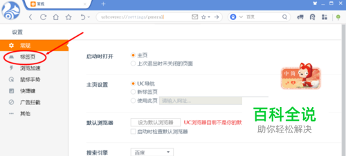 在浏览器设置中找到标签页(每个浏览器的位置不一样),选择。